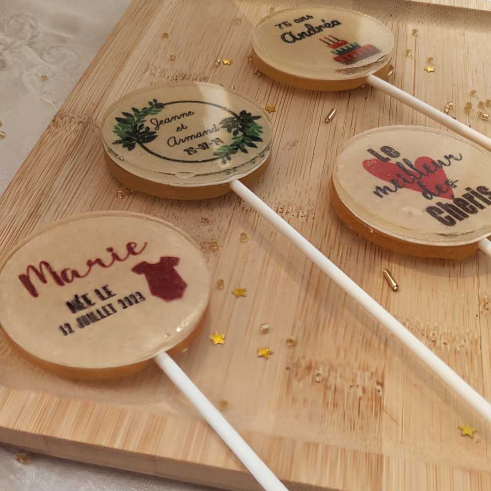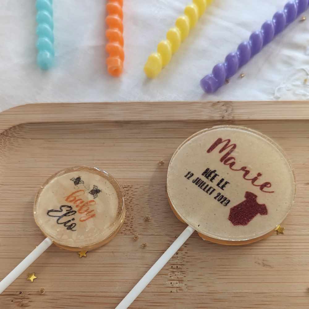 Des sucettes à la fraise, au citron ou encore à la coco et personnalisées avec votre message et en format XXL 🍭