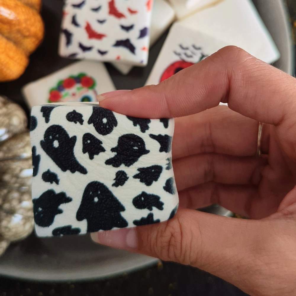 Nos bonbons sont décorées avec des motifs de fantômes, citrouilles ou encore chauve-souris, ces guimauves sont parfaites pour un goûter d’Halloween réussi ou comme décoration gourmande pour votre fête. Un régal pour petits et grands !
