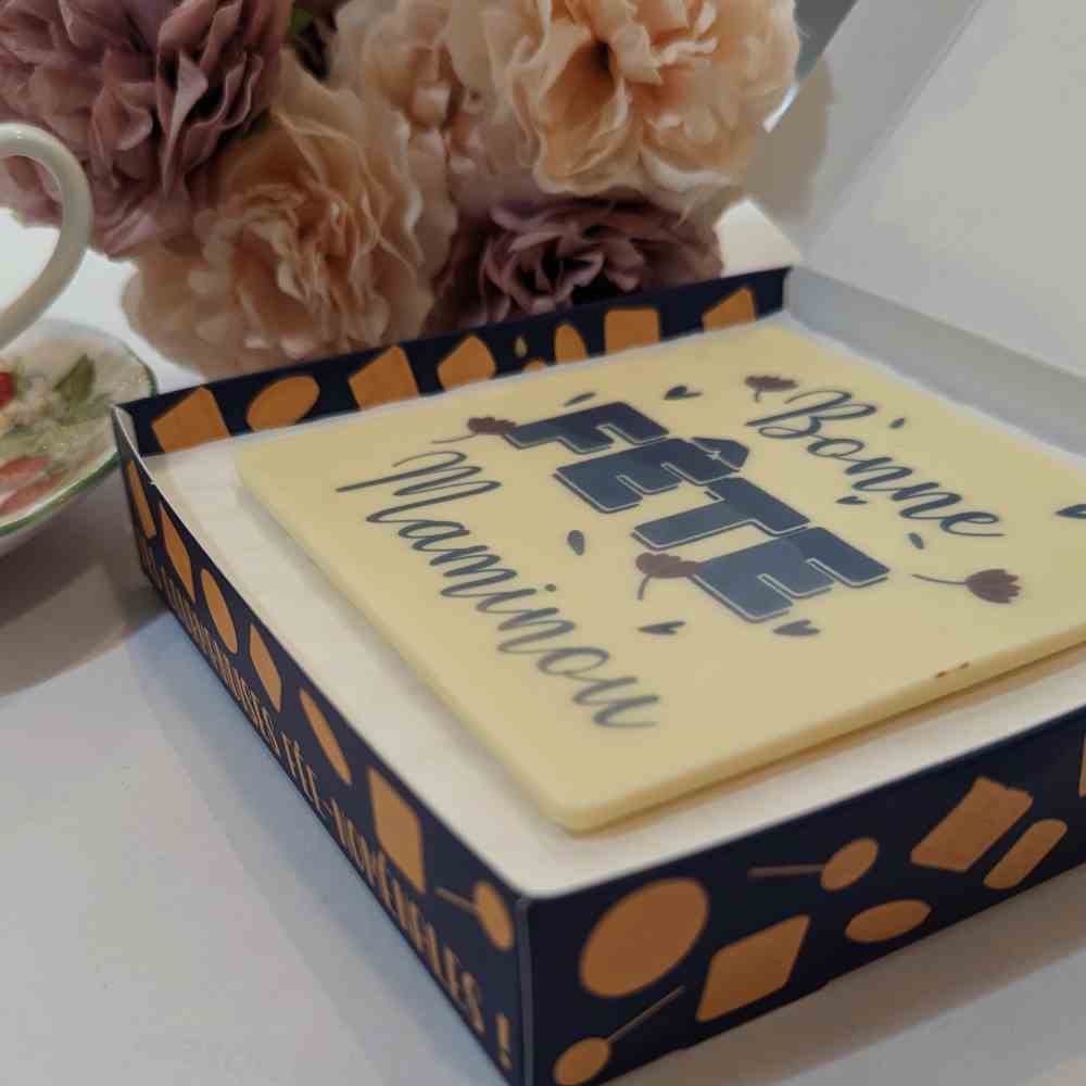 Succombez à la tentation avec notre tablette de chocolat, transformée en une carte comestible dans son coffret carré, touchant le cœur tout autant que les papilles ♥