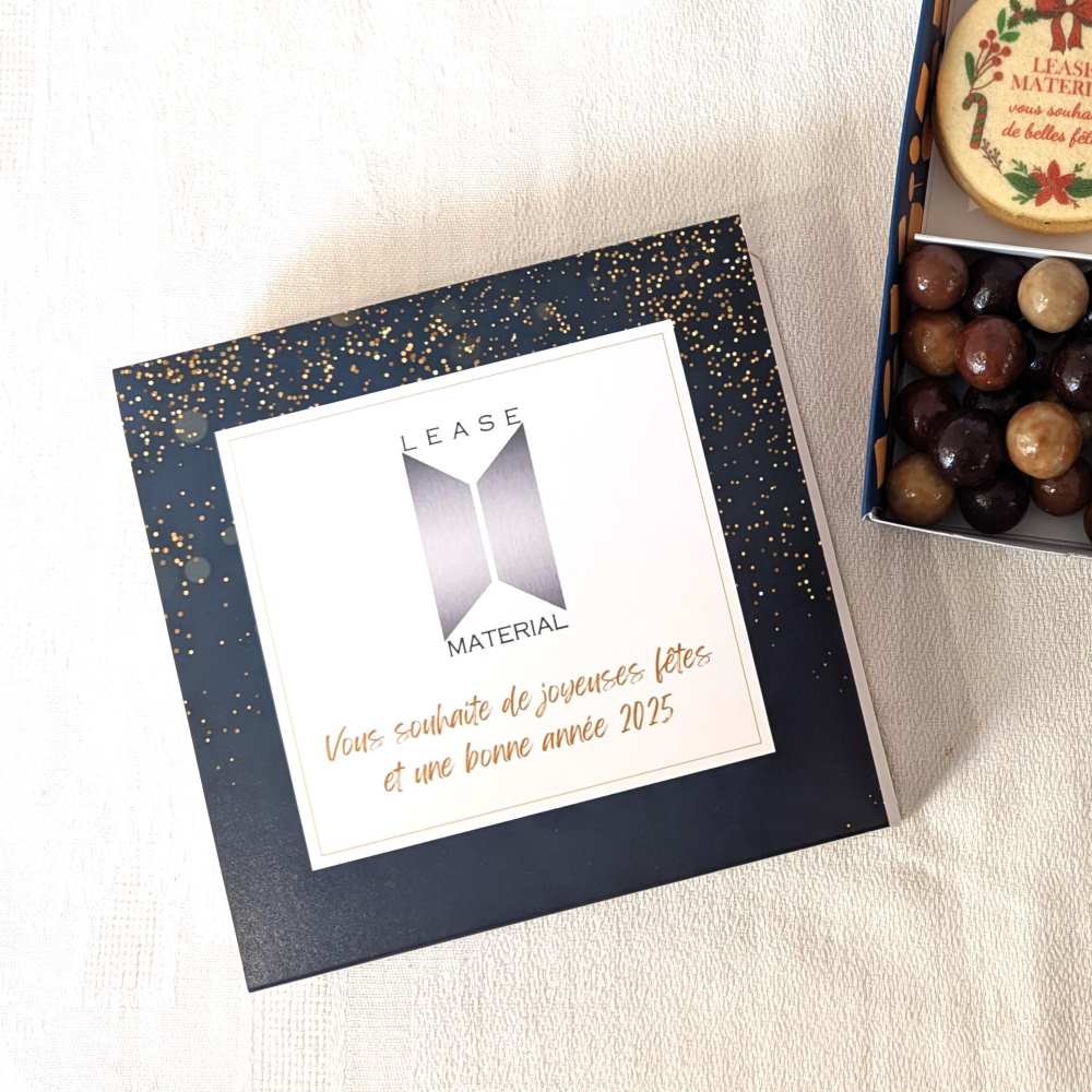 - Fourreau personnalisé : Sublimez vos cadeaux en glissant la boite dans un fourreau personnalisé à vos couleurs et avec le message de votre choix.