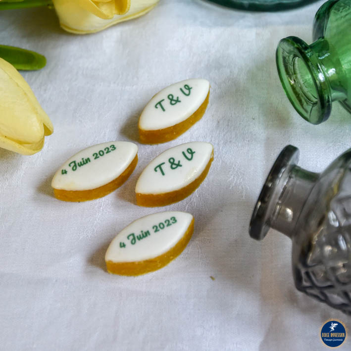 Chez nous, on vous propose de décorés nos calissons avec : un prénom, une date, ou même un petit mot de remerciement imprimé directement dessus avec nos encres alimentaires. Ils sont parfaits pour remercier une personne avec délicatesse : que ce soit après un événement, un coup de main, ou juste pour le plaisir d’offrir.