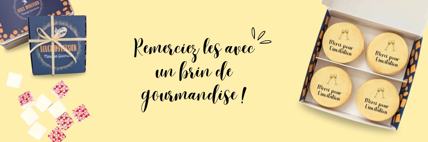 Parfois, un “merci” dit avec le cœur vaut bien plus qu’un long discours. Et quand il se présente sous forme de guimauves personnalisées, de chocolat imprimé ou de sablés décorés, il devient irrésistible ! Ces attentions sucrées sont idéales pour remercier avec délicatesse, sans en faire trop. Juste ce qu’il faut pour toucher.